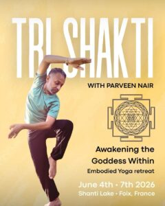 Tri Shakti Retreat Awakening the Goddess Withinwith Parveen Nair📍 Shanti Lake, Foix, France🗓 June 4–7, 2026 A four-day embodied yoga immersion reconnecting you with the three sacred feminine energies of creation. A Sacred Journey into the Tri Shaktis The Tri Shakti Retreat is a deeply transformative embodied yoga experience rooted in ancient yogic wisdom and […]